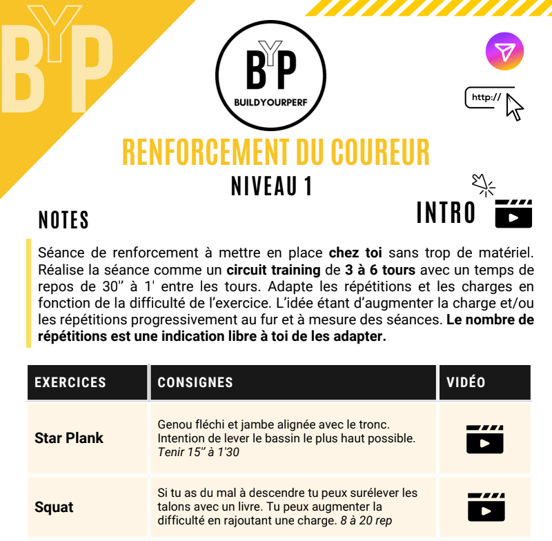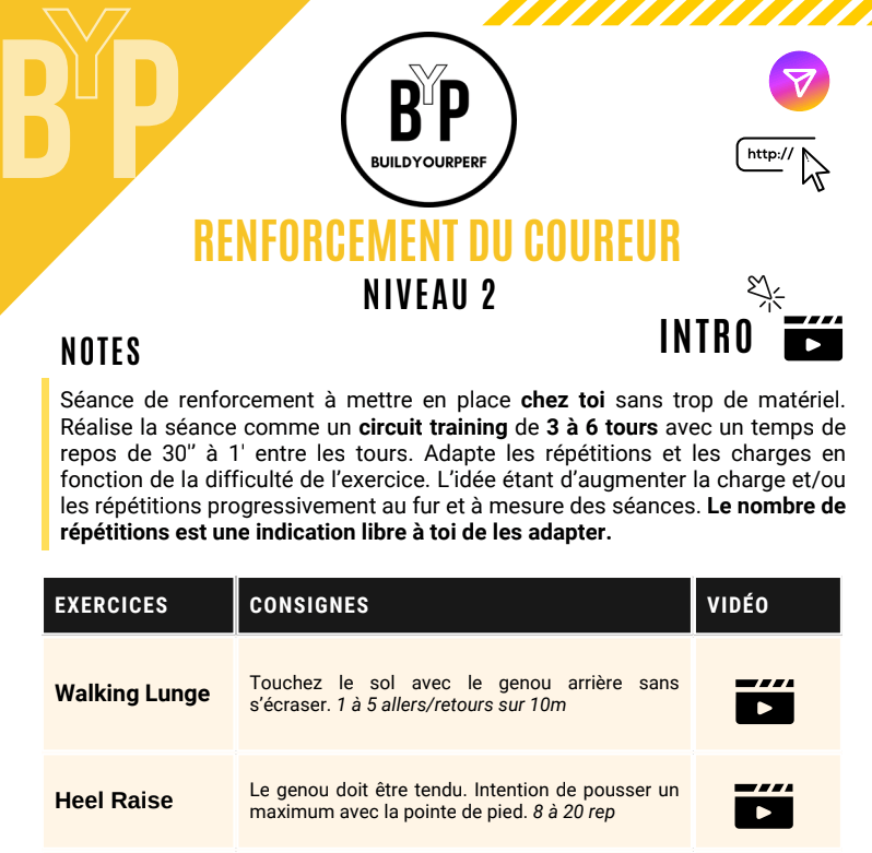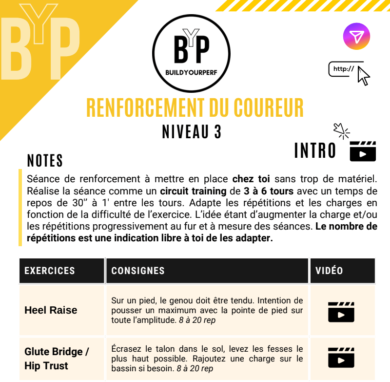 Découvrez les fiches d'exercices de renforcement pour le coureur ⤵️